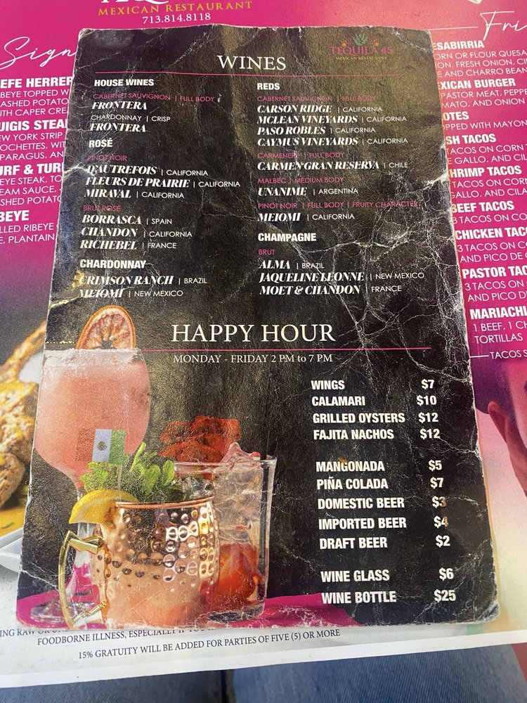 Tequila 45 is a hidden gem in Houston's culinary scene, offering a unique blend of Tex-Mex dishes and wine bar delights. Situated at 7930 Mosley Rd, this restaurant provides an inviting atmosphere with casual and trendy vibes. The menu boasts innovative creations like the Fajita Sandwich, Oysters, Seafood Empanadas, and flavorful Birria. Customers rave about the outstanding service and delicious food, with highlights including the Chilequiles, French Toast, Burrito, and Scrambled Eggs. The restaurant's ambiance is charming, with colorful decor and a spacious outdoor seating area reminiscent of a beer garden. Tequila 45's offerings, paired with excellent cocktails and live music events, make it a must-visit spot for food enthusiasts. So, if you're looking for a delightful dining experience near Hobby Airport, Tequila 45 is the place to be.